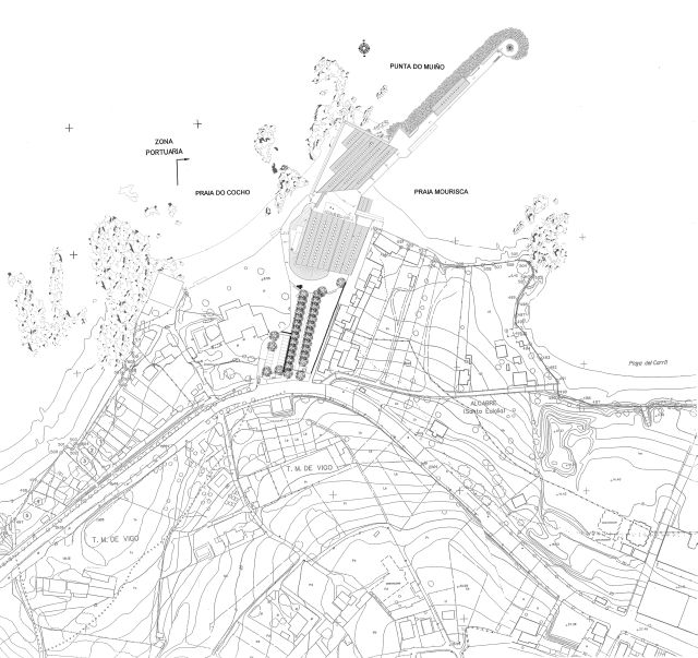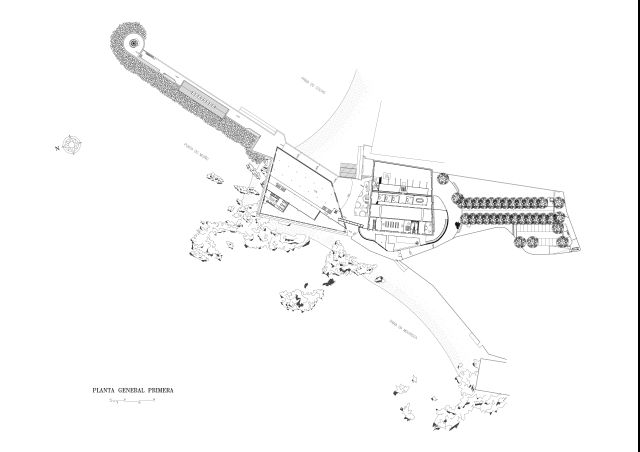 «EI Museo del Mar de Galicia sirve de transición entre la tierra y el mar, y se configura como un cabo, mitad naturaleza, mitad artificio, en este paradigmático lugar del borde litoral, próximo a la ciudad de Vigo, e incorpora la Ría como una parte más del proyecto, sin duda la más importante. EI Museo del Mar de Galicia se concibe así como un único e inequívoco ámbito espacial, con identidad propia, delimitado en parte por un muro perimetral y en parte por el propio mar, y lleno a su vez de espacios menores, dotados de fuerte arraigo y personalidad, en IOS que tienen cabida los más diversos usos que el programa museístico contempla. A medida que estos espacios se recorren iremos encontrando secuencias insólitas y sorprendentes, capaces de transportarnos a través de jardines, edificios, patios, plazas, paseos, pasarelas, muelles…, desde la tierra firme hasta orilla mar. Y todo ello sin manifestar la menor disfunción O desequilibrio sino, por el contrario, logrando un continuo armónico donde los espacios públicos y los privados se suceden los unos a los otros, se combinan y se funden como partes de un todo, en el que tiempo y espacio se ponen al servicio de la Cultura, sin perder nunca de vista la Naturaleza. La obra, en conjunto, es un escenario que se sabe incompleto sin la presencia de figurantes: los visitantes del museo, quienes, en sus desplazamientos a través de los diferentes ámbitos, delimitados por fachadas y cubiertas o simplemente por muros y en sus aproximaciones o en sus alejamientos a los huecos en ellos practicados, completarán el discurso expositivo del museo, con el disfrute del mar y el cielo que, tras ellos, se ofrecen en toda su inmensidad y belleza. Espectáculo éste, reservado habitualmente a los hombres del mar o a los dioses.» César Portela | ||